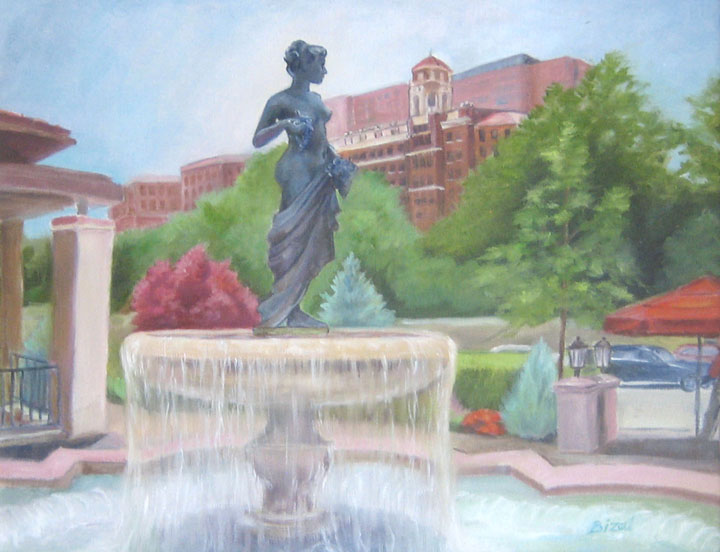 This painting is of a fountain on the Country Club Plaza in Kansas City, Missouri