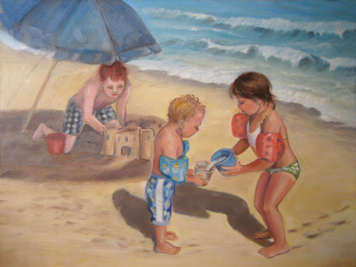 My grandchildren playing on the beach. Used some of my daughter’s photos as reference material.