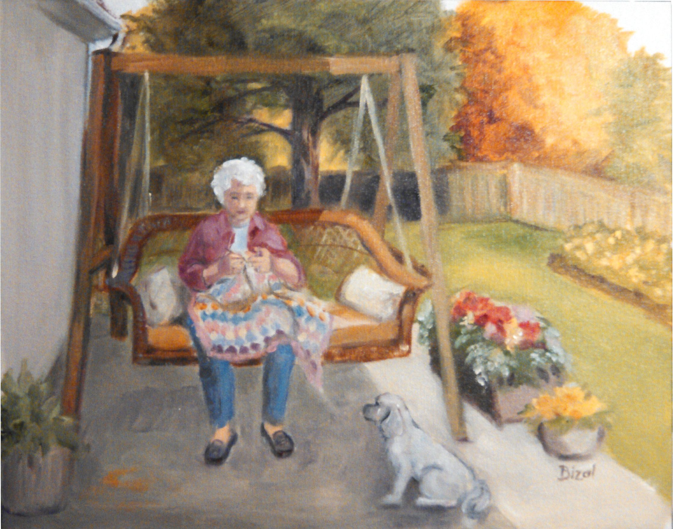 This was a Plein Aire painting of my mother sitting in a swing on our patio.